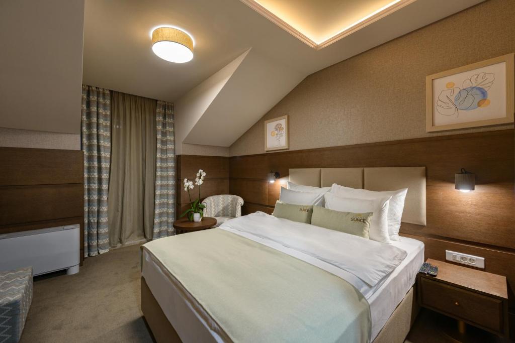 Superior spa soba - Komforna smeštajna jedinica, idealna za parove. Poseduje hidromasažnu kadu u okviru kupatila. Francuski ležaj za dve osobe dimenzija 200x220 pružiće Vam osećaj potpunog užitka.