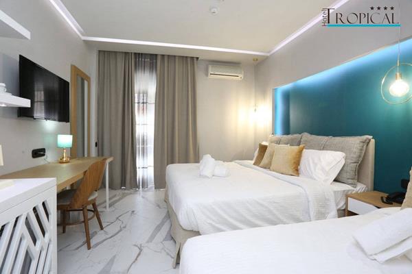 Hotel Tropical 4* (Hanioti, Grčka) se nalazi oko 400 metara od gradskog trga, i oko 400 metara od peščano-šljunkovite plaže.
