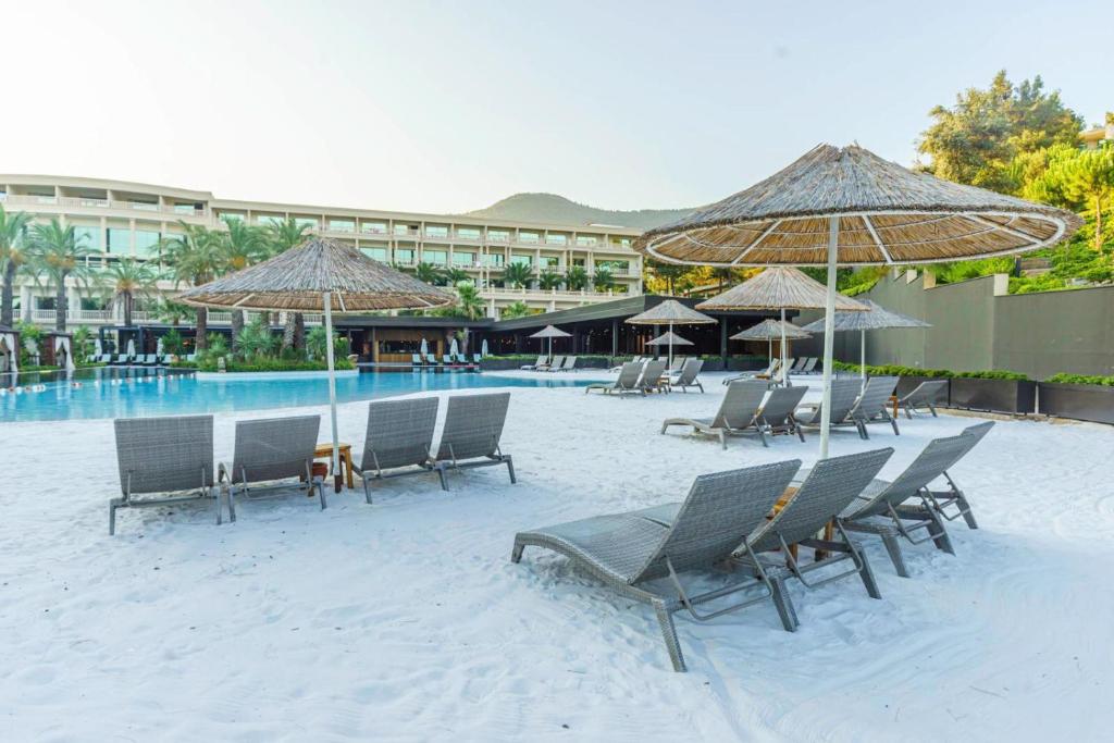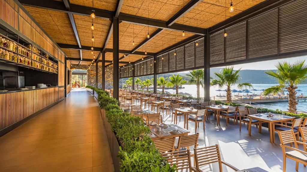 Glavni restoran služi doručak, ručak i večeru na otvorenom na bazi švedskog stola. Na licu mesta postoje 4 a la carte restorana koji služe odabrana jela italijanske, dalekoistočne, turske i morske kuhinje. U okviru objekta postoji poslastičarnica, a gosti takođe mogu da uživaju u raznim koktelima i kafama u 11 barova na licu mesta.