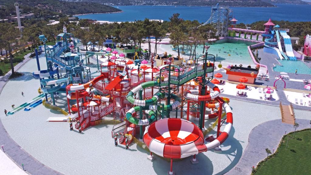 Hotel Vogue Supreme 5*, Bodrum - Smešten na obali mora u zalivu Torba, okružen borovima, Vogue Hotel Supreme Bodrum, ima ukupnu površinu od 400.000 m² i ima otvorene bazene sa 33 vodena tobogana u oblasti Candiland, spa sadržaje, pješčanik i zabavni park za decu. . Ovaj objekat sa 5 zvezdica ima dve plaže ukupne dužine 750 metara. Hotel nudi ultra all inclusive uslugu.