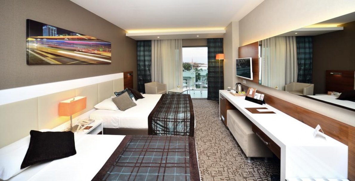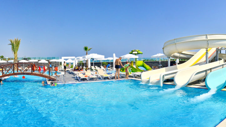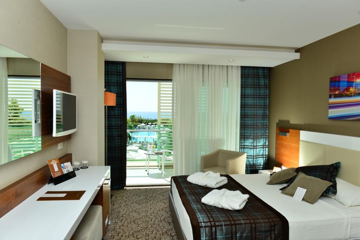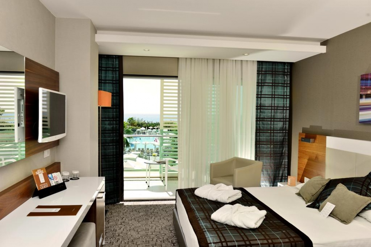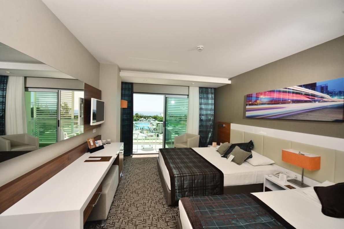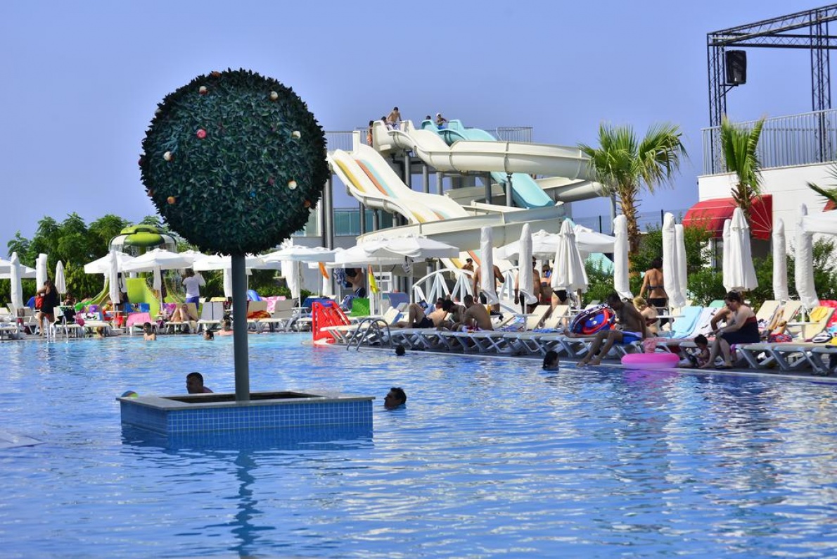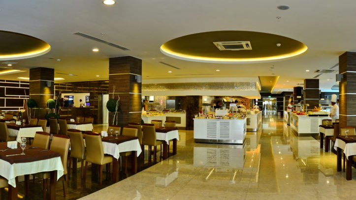 Sadržaj hotela: restoran, a la carte restorani (internacionalni, mediteranski, grill), Wi-fi u lobiju i zajedničkim prostorijama (besplatno), bar pored bazena, bar na plaži, snek bar i disko bar, frizer, telefon, fax, internet, šoping centar, kompjuterske igre, rent-a-car, otvoreni i zatvoreni bazen za decu i odrasle, tobogani, fitnes, tursko kupatilo, sauna, stoni tenis, mini fudbal, odbojka na plaži, zabavni program tokom dana, večernji šou program, mini klub za decu od 4 do 12 godina.