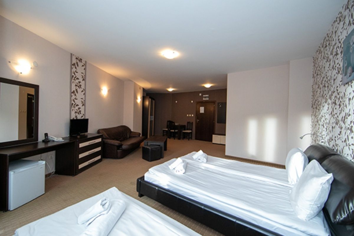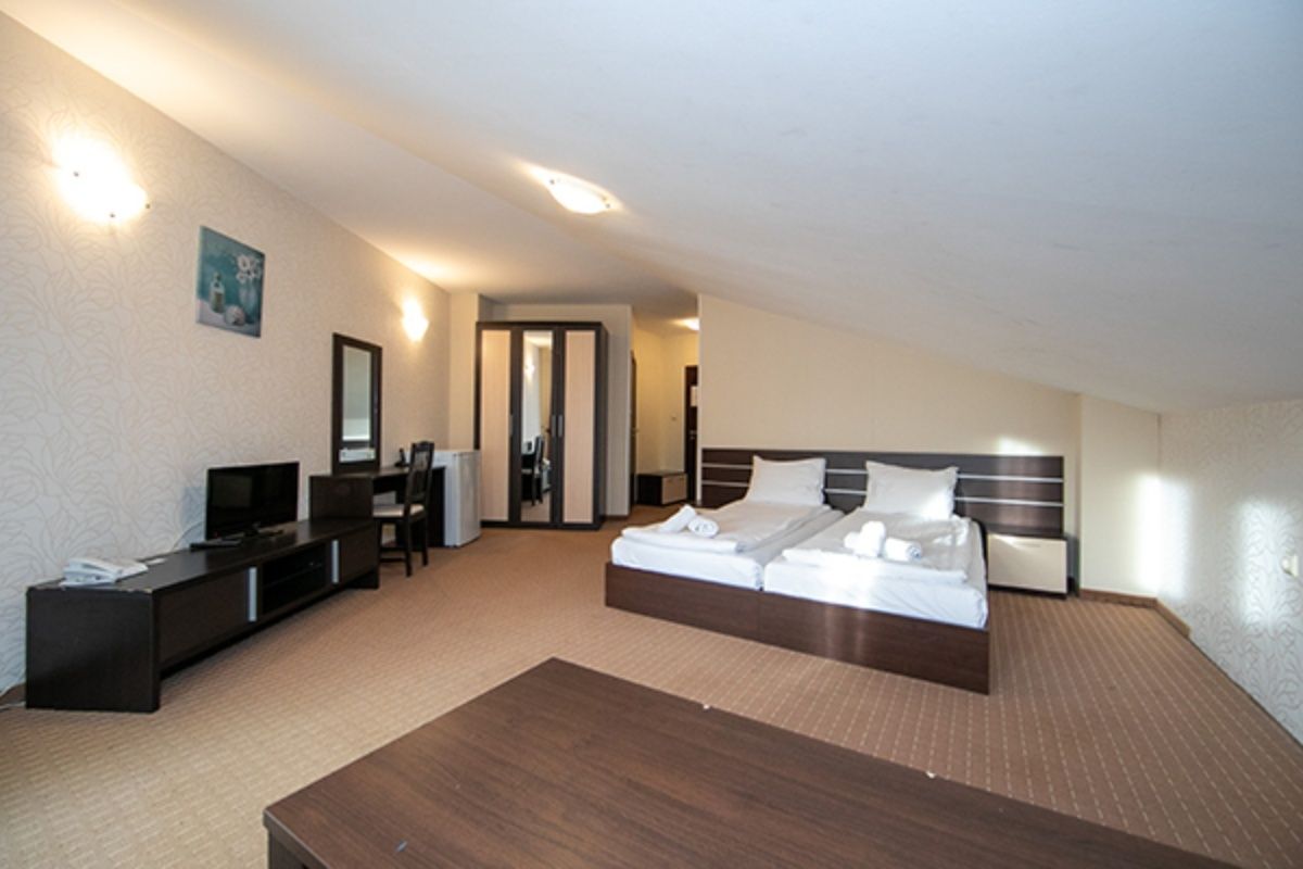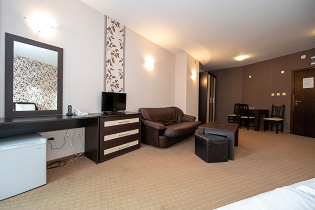 Smeštaj: Hotel raspolaže sa 104 sobe i apartmana sa spektakularnim pogledom na planinu Rila. Sve smeštajne jedinice opremljene su SAT TV-om, mini barom, internetom, telefonom, kupatilom sa fenom za kosu.