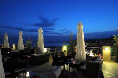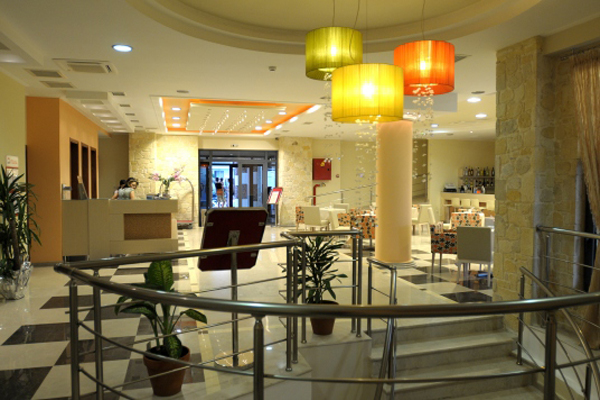 Sadržaj hotela: Hotel ima mali bazen, restoran, lobi, krovni vrt sa barom i jakuzzijem… Gostima su na raspolaganju recepcijski lobby, piano bar, bazen sa pool-barom, dečji bazen i igraonica, mini market i restoran. Na krovu hotela se nalazi a la carte restoran, tzv. roof garden sa koga se pruža panoramski pogled na zaliv, more i marinu Nea Skionija