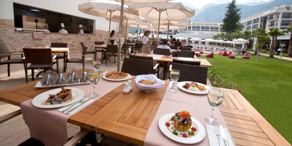 - U većini hotela doručak se služi na bazi švedskog stola, a ručak i večera – klasično usluživanje, u zavisnosti od hotela, izbor između dva ili tri menija (piće nije uključeno u cenu). Uglavnom je zastupljena internacionalna kuhinja