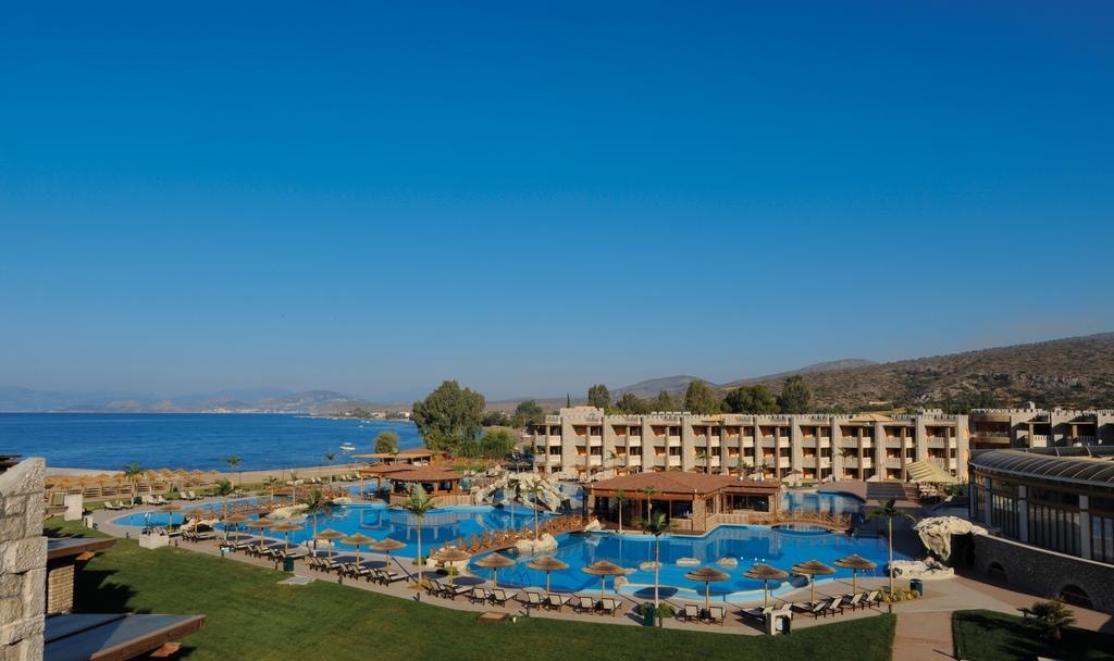 Sadržaj hotela: gostima su na raspolaganju moderni i luksuzni sadržaji, uključujući veliki bazen, spa centar sa saunom, 2 zatvorena bazena sa grejanom vodom i fitnes centar. Takođe, gosti mogu da uživaju u ukusima mediteranske i grčke kuhinje.