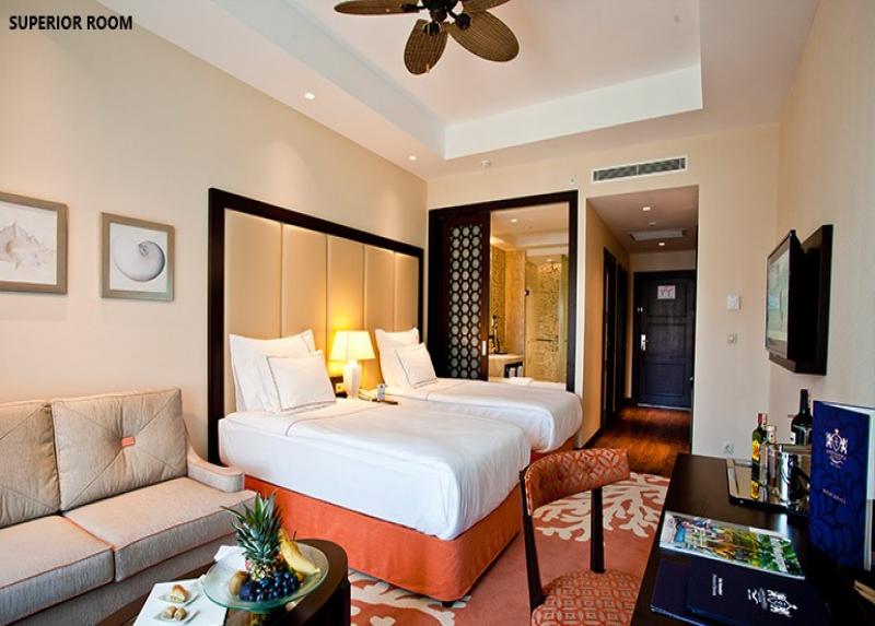 - Superior soba: površine 39m2 , sastoji se od jedne prostorije sa delom za sedenje i sofom na razvlačenje (francuski ležaj ili dva odvojena kreveta), balkon ili terasa, može da ima bočni pogled na more ili pogled na bazen. Od ostalih sadržaja: klima, sef, mini bar dopunjuje se jednom dnevno (voda, sokovi,pivo, vino), ketler, LCD TV sa satelitskim i muzičkim kanalima, telefon, kupatilo sa tuš kabinom ili kadom, fen, papuče, bademantil, Wi-Fi, meni jastuka.