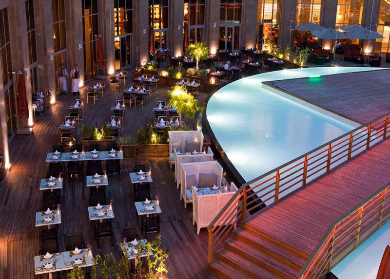 Sadržaj hotela: Kaya Palazzo Golf Resort poseduje glavni restoran, 2 Snack restorana, 5 à la carte restorana, (libanski, azijski, italijanski, riblji, Steak-House), barovi, poslastičarnica, dečiji restoran i diskoteku, dečiji bazen, mini club, mini disco, igralište, teenage club, 2 otvorena bazena ( od kojih je jedan VIP 16+) i 2 zatvorena bazena ( Spa-greje se u tokom zime) i Fitness, dečiji bazen, aqua park sa 7 tobogana za odrasle i 2 za decu, amfiteatar, igre na bazenu, vaterpolo, košarka, streljaštvo, fitness centar, odbojka na plaži, gimnastika u vodi, aerobikc joga, pilates, stoni tenis, pikado, internet café, vodeni bicikl, Wi-Fi u lobiju i otvorenom prostoru (sa ograničenom brzinom i brojem korisnika),play station, bioskop, tursko kupatilo (hamam), sauna, parno kupatilo, snežna fontana.