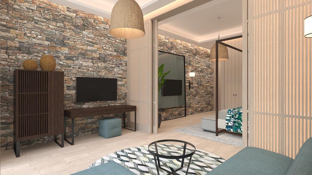 - Suite Sea View: površine 79m2, pogled na more i bazen, spavaća soba sa francuskim krevetom, dnevna soba sa kliznim vratima, dva WC -a, jedno kupatilo sa hidromasažnom kadom, dve tuš kabine i balkon.
