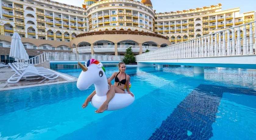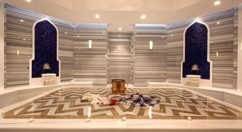 Sadržaj hotela: Recepcija,lobi,glavni restoran,a la carte restorani,barovi,dečiji club,bazen,aqua park,igralište,stoni tenis,odbojka na plaži,tursko kupatilo,sauna,fitness,zatvoren bazen