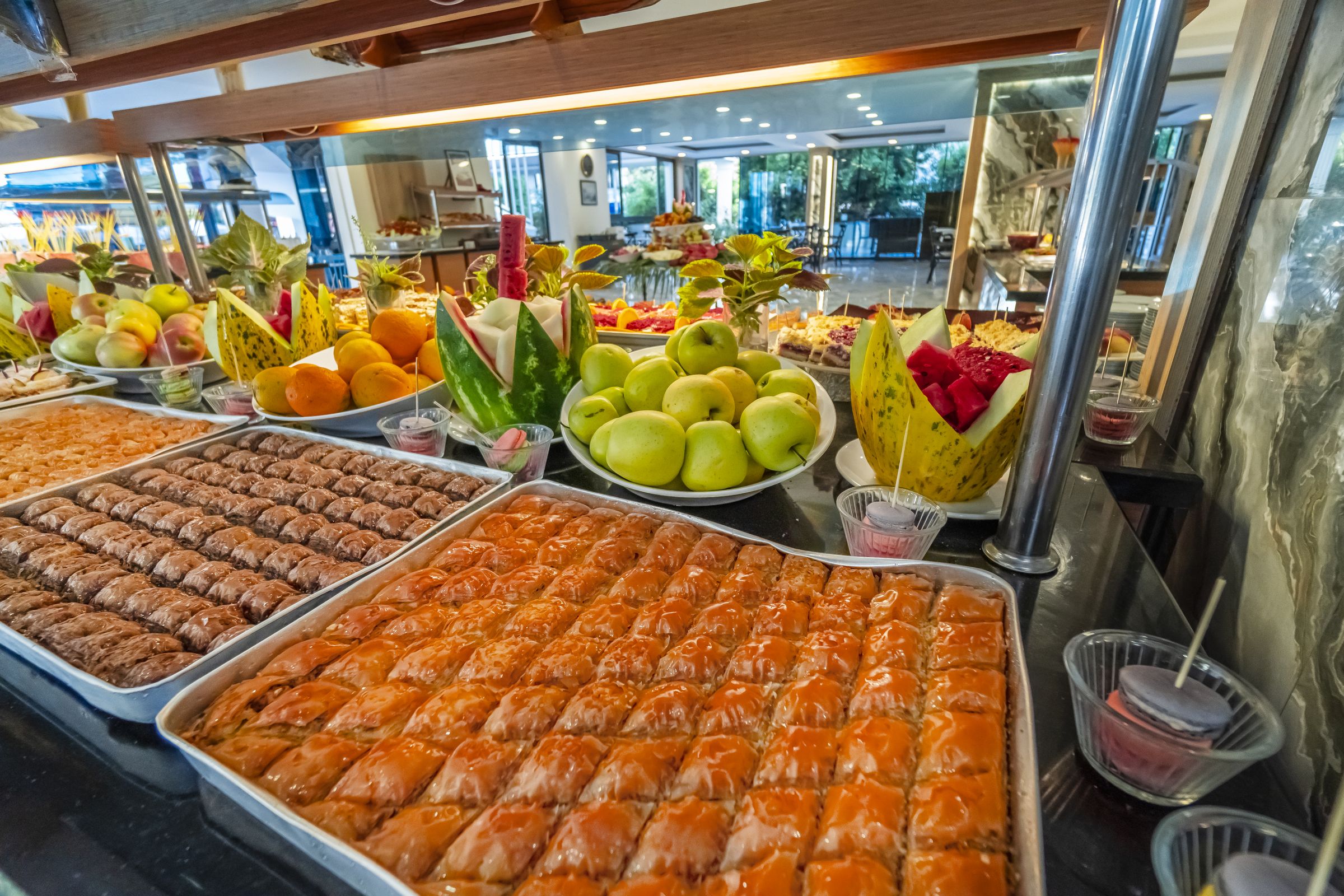 Usluga: All inclusive (sve uključeno) na bazi otvorenog bufea – samoposluživanje, izbor više jela (švedski sto) za doručak, ručak, večeru, popodnevni čaj, kolači, kasna noćna supa, domaća alkoholna i bezalkoholna pića od 10:00h – 22:00h. AI koncept ne uključuje: uvozna pića, flaširana pića, sveže voćne sokove, tursku kafu, sladoled, hranu i pića na plaži, sva pića posle 22:00h.