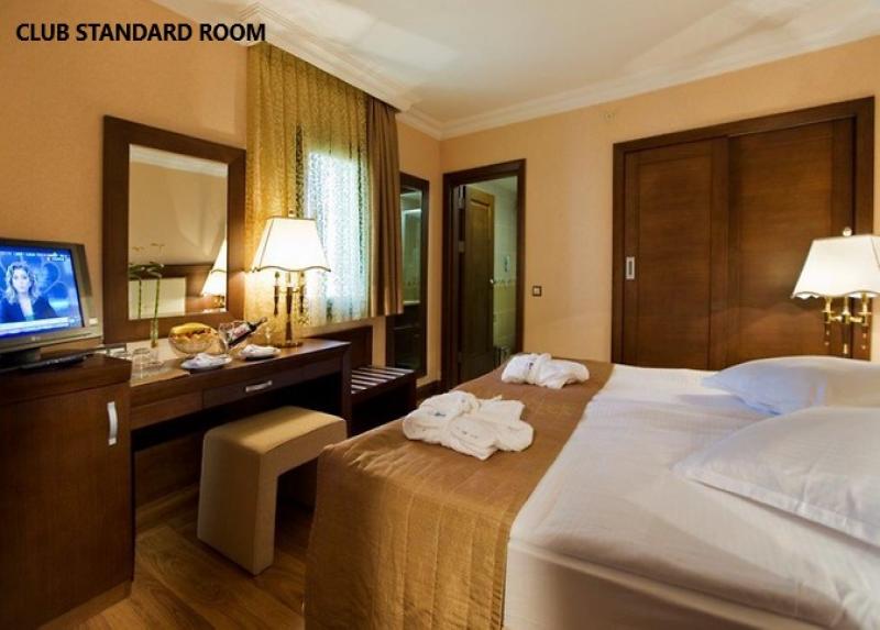 Sobe: Hotel se sastoji od glavne zgrade i klub dela. U glavnoj zgradi se nalazi 19 de luxe soba (površine 30 m2) i 3 porodične deluxe sobe . U klubu se nalazi 96 standardnih soba (površine 15 m2) i 36 porodičnih soba (površine 35 m2). Sve sobe su klimatizovane, imaju balkon, satelitsku TV, mini bar (voda dnevno), sef, telefon i bežični internet.