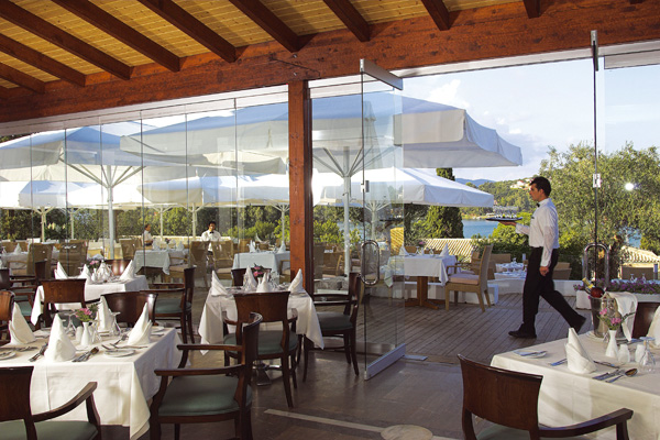 Sadržaj hotela: Hotel ima 370 soba koje su rasporedjene u glavnoj zgradi, zgradi “Corcyra gardens” i u bungalovima, glavni restoran, parking, rent a car, kineski restoran, tri bara, bazen, dečiji bazen, teren za tenis, odbojku, košarku, golf, i mini golf, bilijar, stoni tenis, igralište za decu, animacije i mini klub, jakuzzi na otvorenom, prodavnica suvenira, dorktor na poziv.