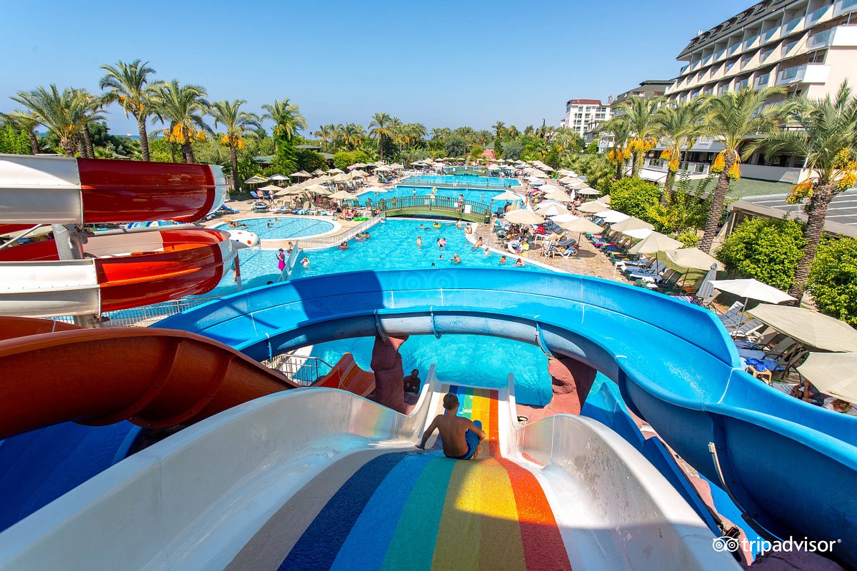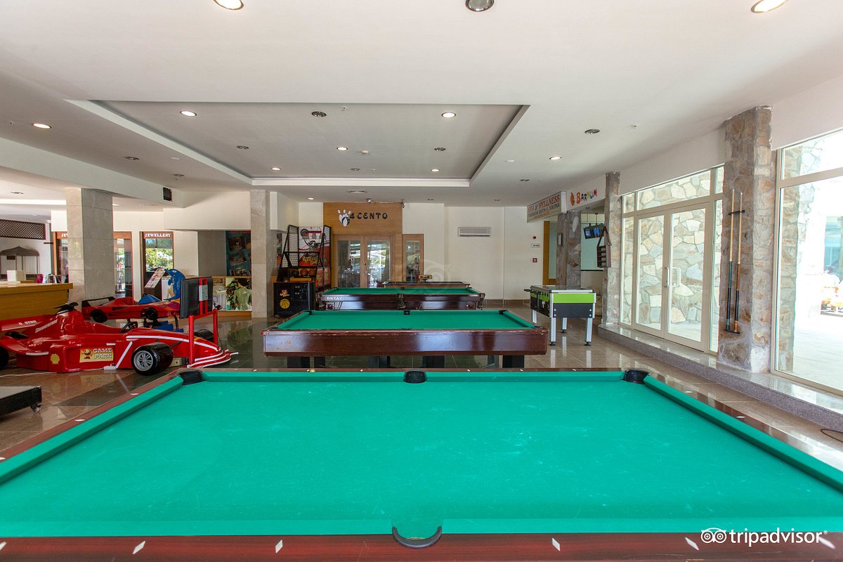Hotelski sadržaji: Glavni restoran, 2 a la carte restorana (italijanski, riblji- jednom u toku boravka besplatno uz rezervaciju), 5 barova, 2 spoljašnja bazena, 3 vodena tobogana, SPA centar), prodavnice, hemijsko ciščenje, sala za konferencije, frizer, tursko kupatilo, sauna, bežični internet ( u lobiju besplatno), teretana, aerobik, odbojka na plaži, košarka, stoni tenis, pikado, animacioni program, diskoteka (samo je ulaz besplatan), 2 teniska terena, 2 dečija bazena, 3 tobogana, dečije igralište, mini klub (4 – 12 god.)