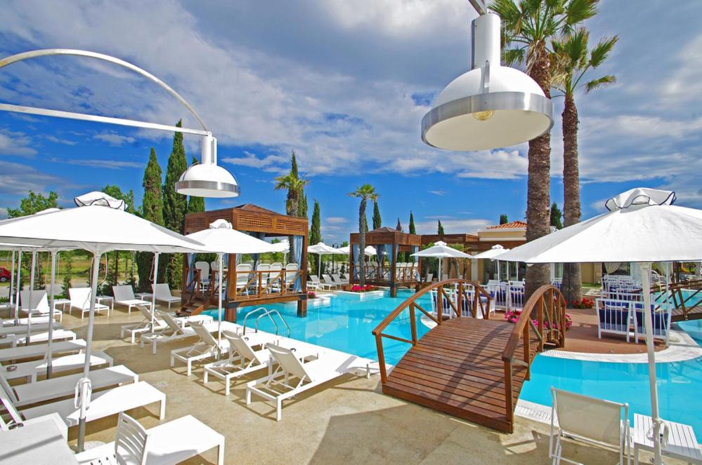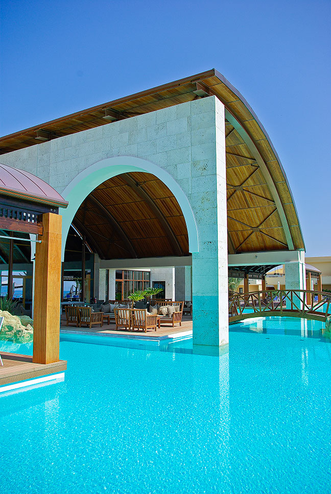 Sadržaj hotela: pored standardnih sadžaja, ima 115 različitih soba (standard, superior, suite…), ima a la cart restoran, recepciju, klimu, plesnu halu,barove, Internet „corner“ (uz doplatu na licu mesta), wi-fi Internet u javnim delovima hotela ,SPA centar (za osobe starije od 16 g. – korišćenje zatvorenog bazena, teretane i parnog kupatila je uključeno u cenu, dok se razne masaže i tretmani doplaćuju po cenovniku SPA centra),parno kupatilo, juvelirnicu, tavernu, mini market, prodavnicu duvana, noćni klub, žuvu muziku, dečiji bazen, igralište za decu, parking… U hotelu postoji više otvorenih bazena, od kojih su neki privatni i pripadaju vilama i suitama. Suncobrani i ležaljke oko bazena i na plaži su uključeni u cenu.