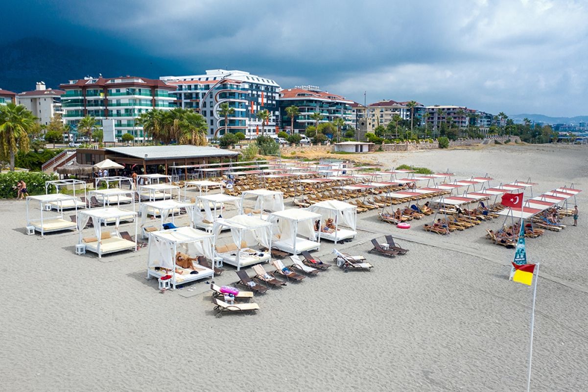 Privatna peščano – šljunkovita plaža udaljena cca 400m do koje se dolazi podzemnim prolazom. Plaža ima plavu zastavu za kvalitet. Ležaljke, suncobrani i dušeci su besplatni dok se korištenje hotelskih peškira za plažu naplaćuje. Bar na plaži uključen u cijenu.