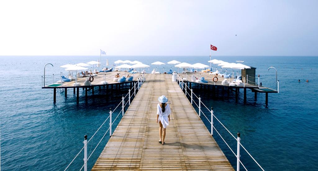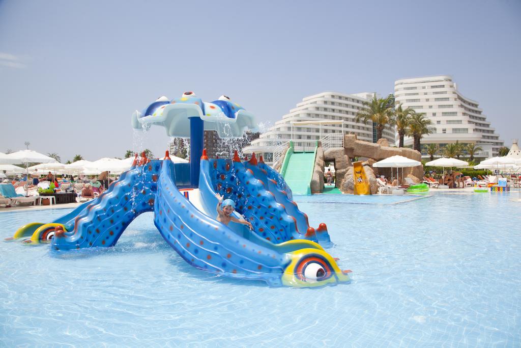 Hotel u svom sastavu poseduje zatvoreni i otvoreni bazen, dečiji bazen, tobogane, fitnes centar, saunu, tursko kupatilo, parno kupatilo, šah, pikado, aerobik, step, gimnastika, odbojka na plaži, košarka, 4 teniska terena, mini fudbal, mini golf, stoni tenis, streljaštvo. Zabavni program za odrasle i decu tokom dana, turske večeri, zatvoreno pozorište, dnevne i noćne animacije, pub, uživo muzika, bioskop i disko na otvorenom, mini klub za decu od 4 do 11 godina podeljeni po starosnim grupama, igralište, mini disko uveče, park. Prema pravilima hotela dodatno se doplaćuju: Spa centar i salon lepote, solarijum, masaža, oprema za tenis, osvetljenje za teniske terene i časovi tenisa, bilijar, internet i kompjuterske igre, sportovi na vodi, profesionalni fudbalski tereni, zatim usluga lekara, usluga pranja veša, telefon, fax, internet kafe, , čuvanje dece, kolica za bebe, šoping centar. Hotel ima glavni restoran Turkuaz na bazi otvorenog bufea (uvozna pića se ne služe), A'la Carte restorani: Miracolo (italijanski), Lagos (riblji), Anatolia (turski), Mexican (meksički), Pier (riblji i restoran morske hrane - deci ispod 12 godina nije dozvoljen ulaz ), lobi bar (domaća i određena uvozna pića od 10.00 do 02.00h), bar pored bazena (domaća i određena uvozna pića od 10.00 do 23.00h), bar na plaži (samo bezalkoholna pića) dok su u Bridge baru, sva pića su uz doplatu.