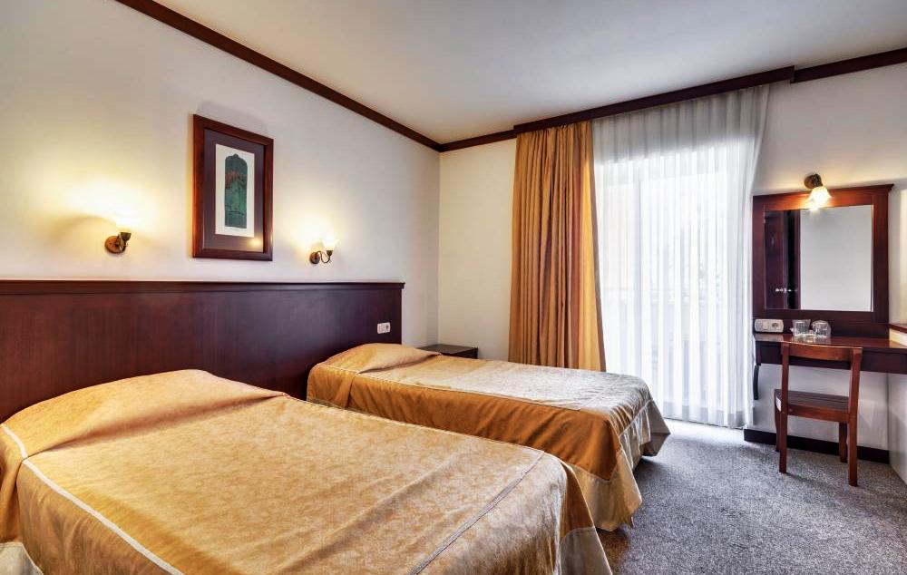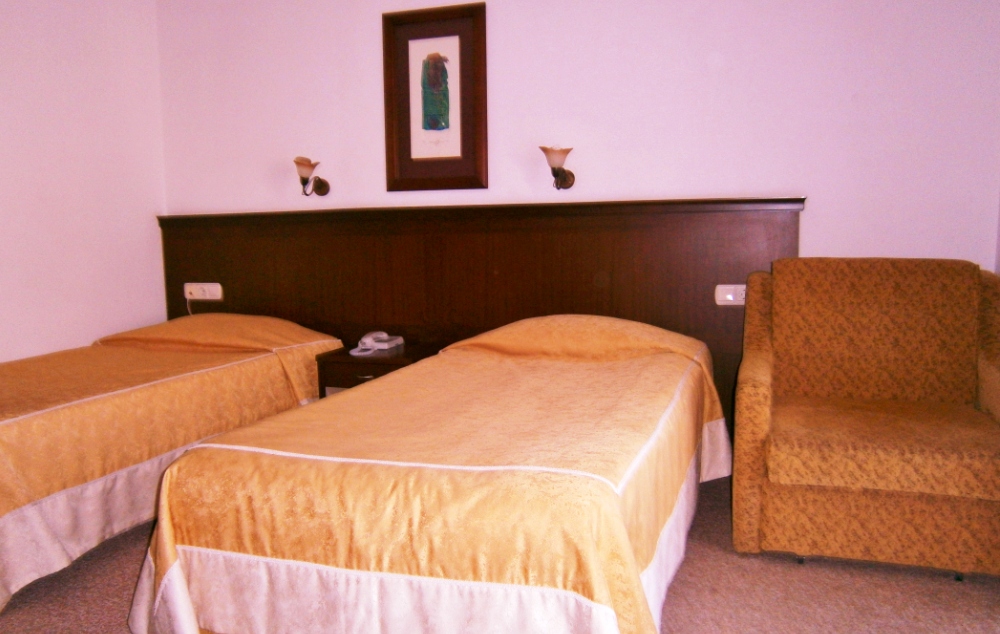 Svaka soba je klimatizovana i ima TV,telefon, sef (plaća se), mini bar (voda po dolasku besplatna), fen za sušenje kose, balkon (sobe u prizemlju su sa francuskim balkonom).
