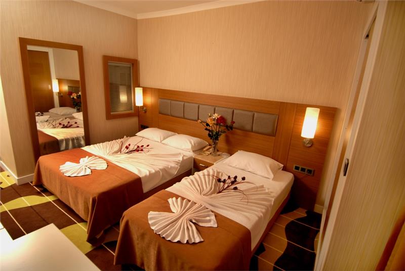 Hotel se sastoji iz više zgrada.Na raspolaganju su moderno dizajnirane i klimatizovane sobe,od kojih svaka ima kupatilo (tuš/wc), fen, TV, telefon, sef (besplatno), mini bar (pun samo prvog dana,nakon toga nema dopune),balkon.