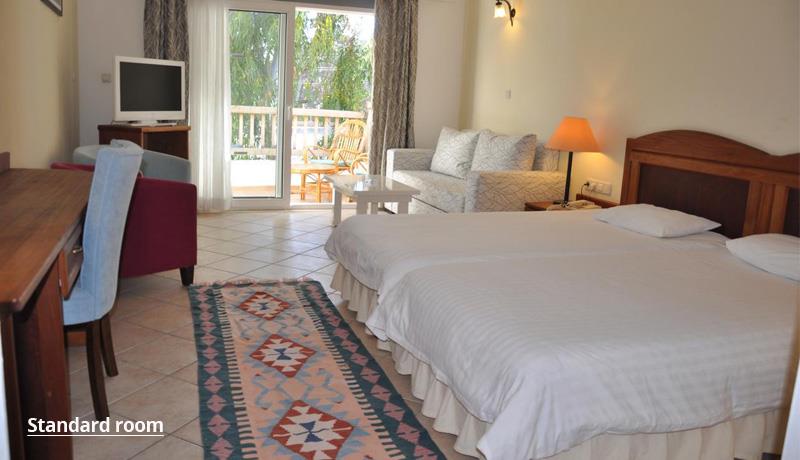 Hotel ima uslugu polupansiona – samoposluživanje – izbor više jela u glavnom restoranu za doručak i večeru. Pored glavnog restorana gostima su na raspolaganju i dva à la carte restorana (italijanski i turski). U koncept usluge su uključeni doručak i večera u glavnom restoranu, dve vrste soka, kafa i čaj tokom doručka.