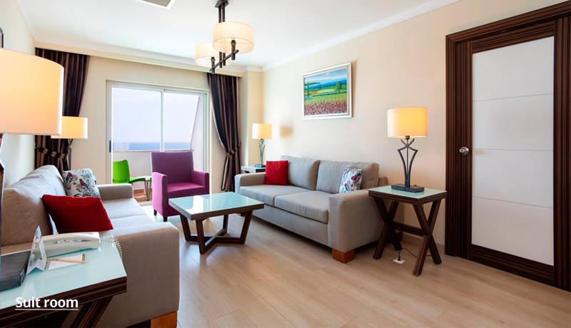 Glavni i a’la carte resotoran (plaća se rezervacija), bežični internet (besplatno), 5 barova, unutrašnji bazen, 2 spoljašnja bazena, 3 vodena tobogana, tursko kupatilo, parna soba, sauna, teretana, aerobik, akvabik, odbojka na pesku, košarka, stoni tenis, pikado, muzika uživo, diskoteka (ulaz), animacija, dečiji bazen, dečije igralište, dečiji klub (4-12 godina).