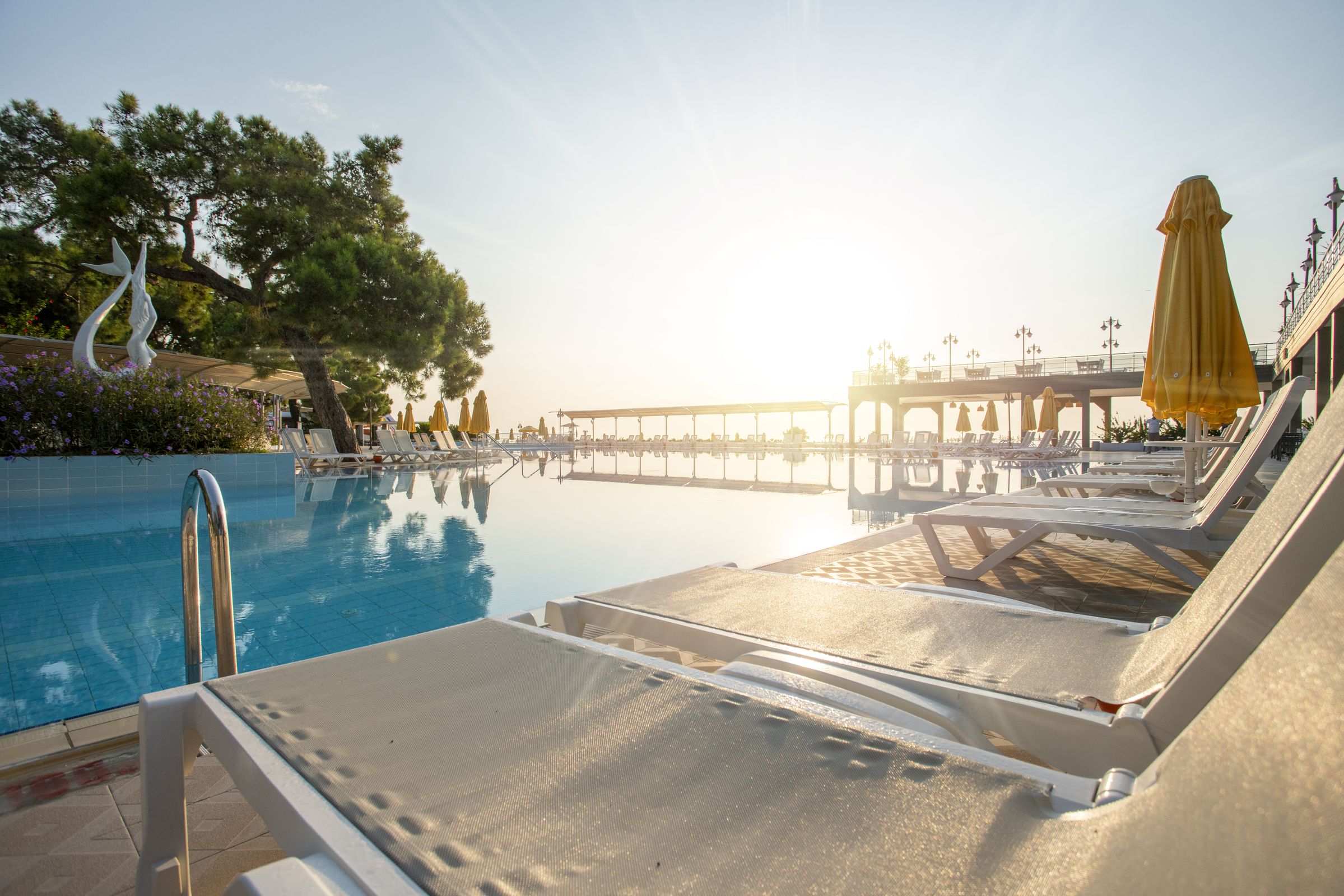 HOTELSKI SADRŽAJI: Hotel se prostire na velikoj površini od 34.000m2, nalazi se na obali sa spektakularnim pogledom na more i planine. Hotel se sastoji od 1 glavne zgrade i 320 soba usred fino i skladno uređenog vrta. Hotel obuhvata lobby, recepciju, restoran s unutrašnjom i otvorenom terasom, 2 A la Carte restorana (turski i riblji) - uz rezervaciju, 5 barova (lobby, bazen, snack bar, disko i Sunset Turquoise bar), 2 teniska terena (tvrdi pod), otvoreni bazen, dečji bazen, tobogan, zatvoreni bazen, tursko kupatilo, saunu, fitness centar. U ponudi hotel nudi: vodene sportove, shopping centar, fotografa, Rent a Car, 3 konferencijske sobe. Tu je i usluga pranja odeće, sef (uz doplatu) u sobama i besplatni bežični internet u lobbyu.