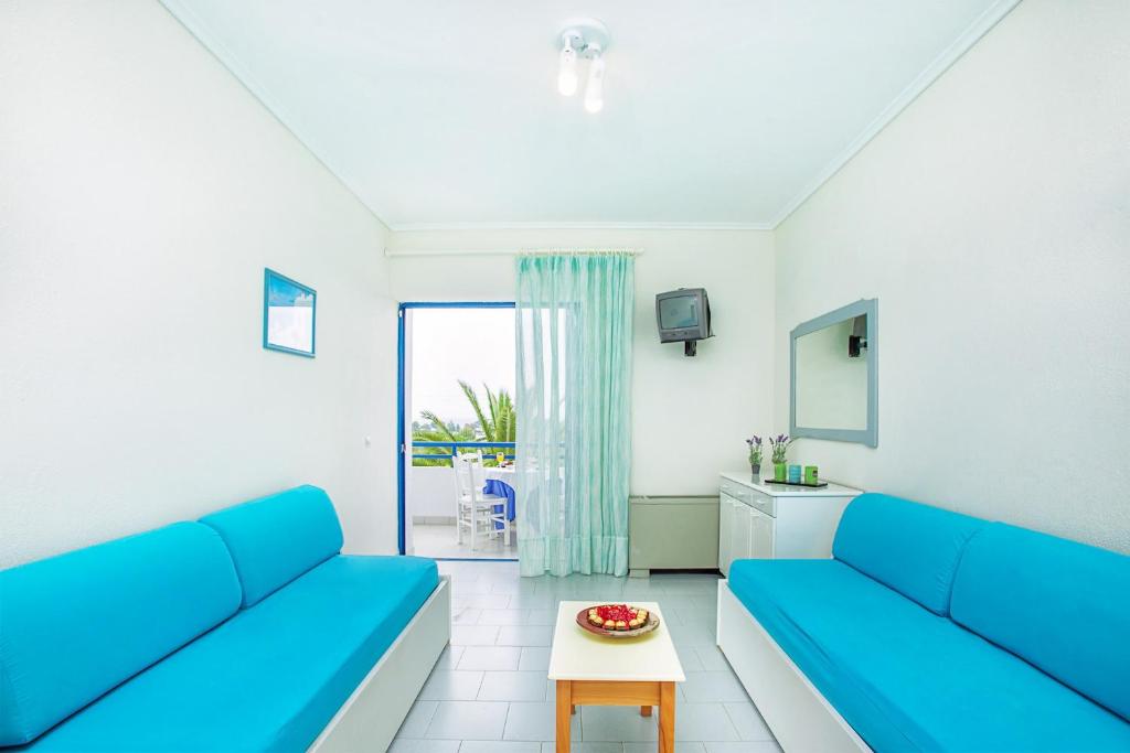 Sadržaj soba: sobe imaju pogled na bazen, more ili baštu.Sobe sadrže fržider, klimu, fen za kosu, TV i telefon.Pored toga, postoje i sobe koje su specijalno dizajnirane da zadovolje osobe sa invaliditetom.
