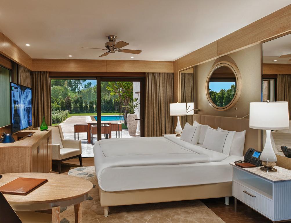 - Golf suits pored bazena (imaju 100 m2 + 24 m2, za max 4+inf, terasa, imaju pogled i pristup bazenu od 140m2 koji deli sa jos jednom sobom, jedna spavaca soba, dva kupatila, jedna dnevna soba sa delom za sedenje, radni sto, soba za presvlacenje),