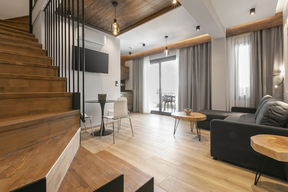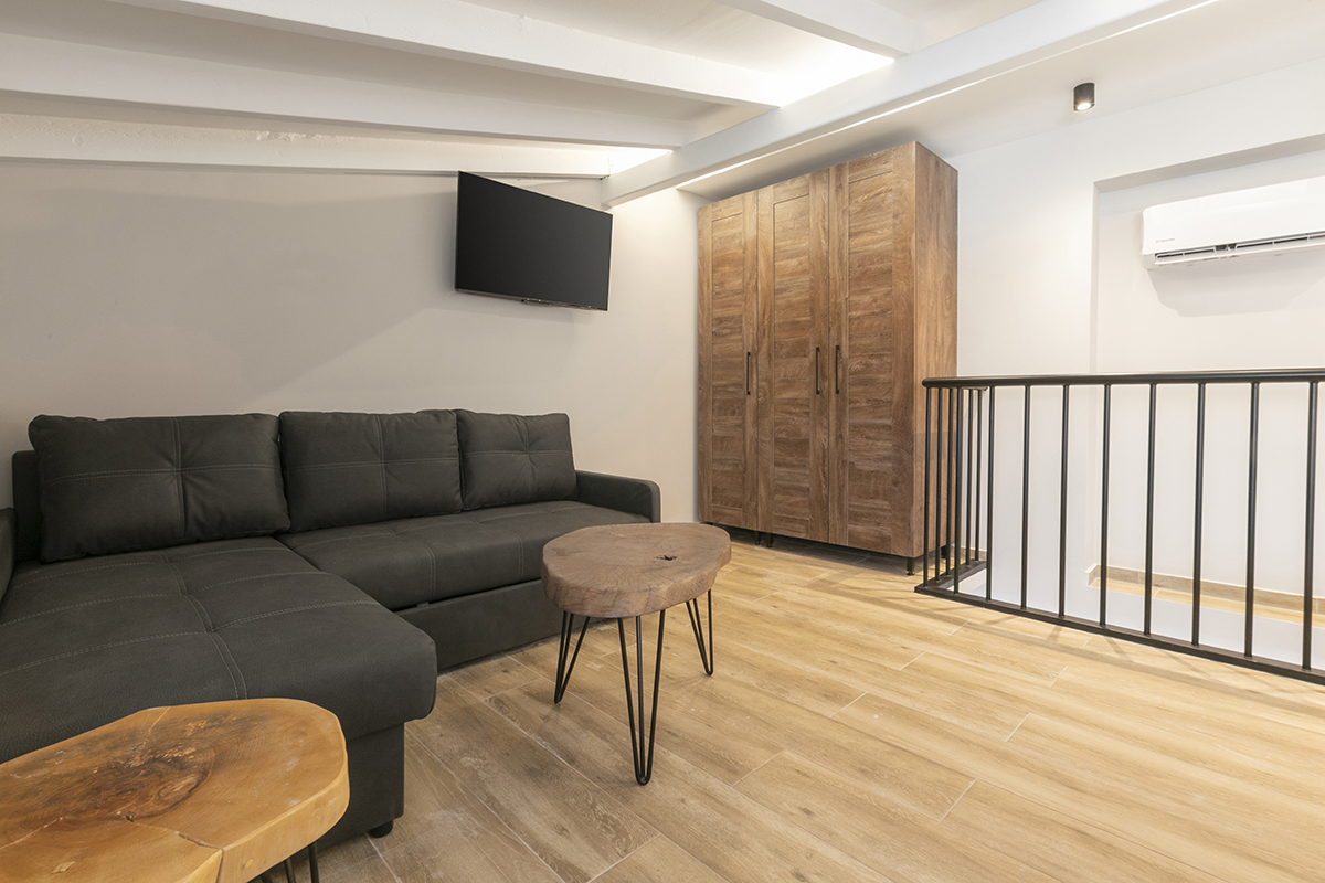 Mezoneta 1/4+1: Mezonete se prostiru na dva nivoa. U donjem nivou se nalazi ležaj na razvlačenje, a na gornjem nivou je francuski ležaj i jedan singl ležaj. Poseduju TV/KAT, klima uređaj (korišćenje je besplatno), noćni stočić, orman, kao i kuhinjski deo koji je u potpunosti opremljen sa posuđem, rešo sa dve ringle, frižider, aspirator. Kupatila imaju tuš/wc. Mezonete se nalaze na drugom spratu.