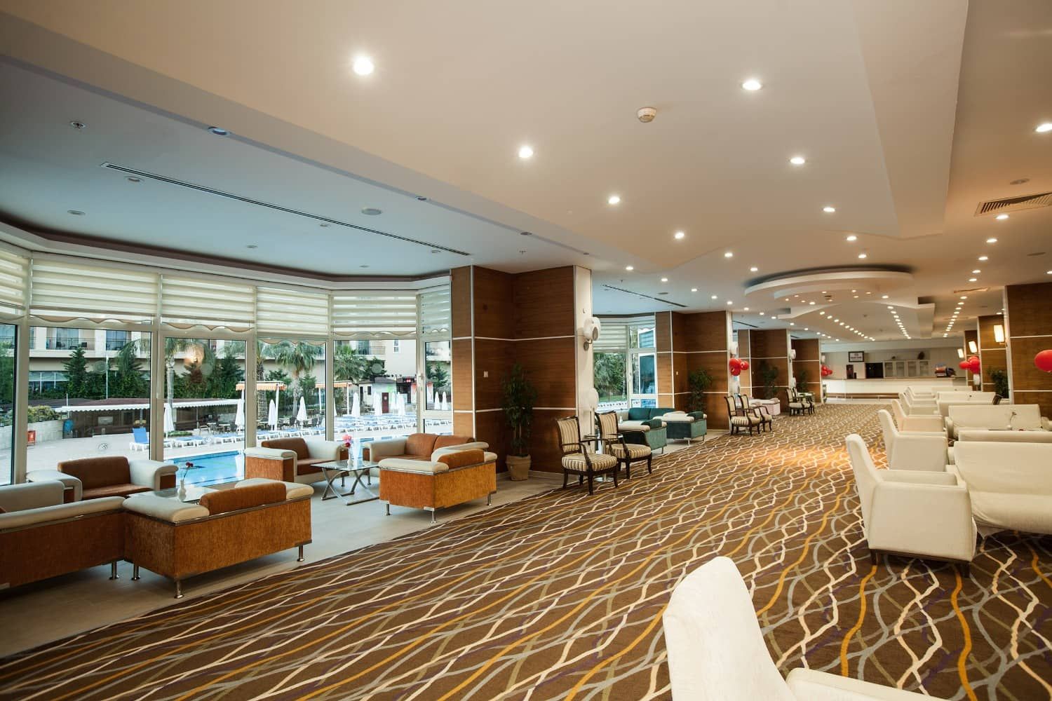 Glavni restoran – Ambrossia u kojem se servira švedski sto, A'la Carte restorani (uz doplatu) – Turska, Italijanska kuhinja, Riblji A'la Carte restoran, snack bar, slastičarna, bar pored bazena, bar u lobiju, piano i disko bar, snack bar na plaži. Posebno se naplaćuje – doktor, babysitting, vešeraj, frizer, rent a car, telefon, fax, šoping centar, internet cafe, PC igrice, internet u sobama se naplaćuje.