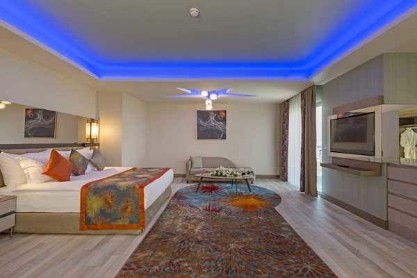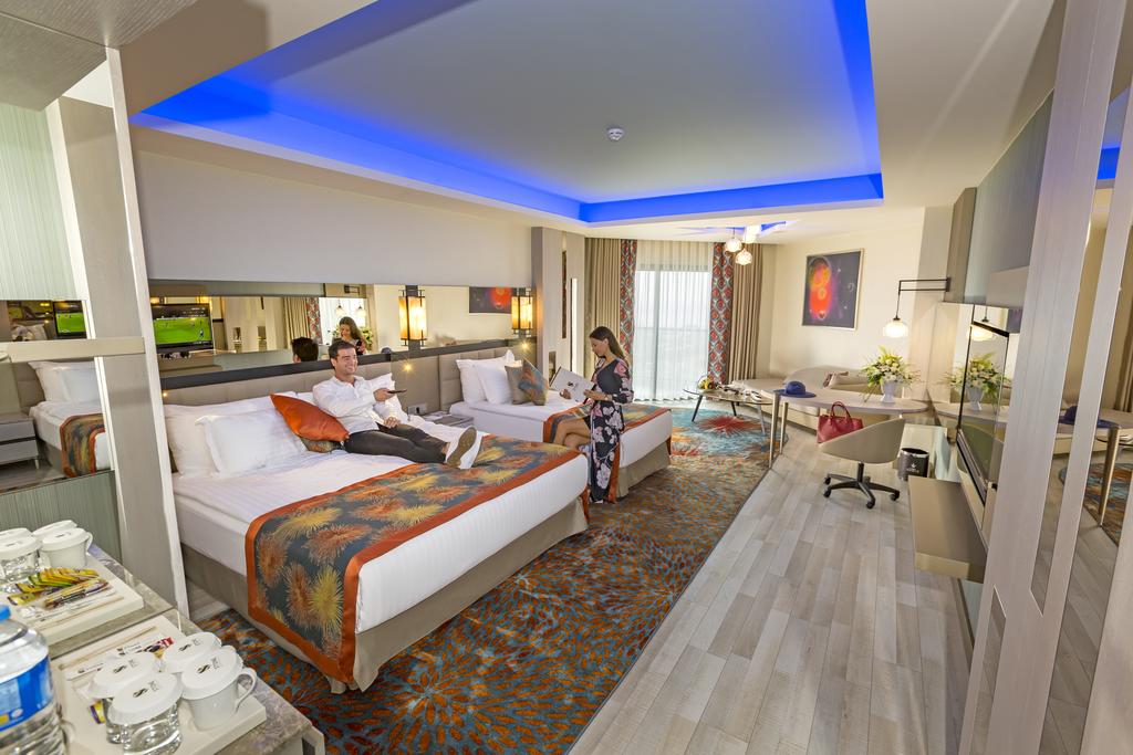 Hotel u svom sastavu poseduje zatvoreni (ne radi u letnjem periodu) i otvoreni bazen za odrasle i decu, jedan od bazena je polu olimpijski, akva park, sauna, tursko kupatilo, parno kupatilo, fitnes centar, teniski tereni, košarka,odbojka na plaži, stoni tenis. Prema pravilima hotela dodatno se doplaćuju: SPA, kozmetički i Wellness centar, masaža, sportovi na vodi, osvetljenje za teniske teren, kuglanje, bilijar, telefon, fax, internet kutak, lekar, čuvanje dece, usluge vešeraja i hemijsko čišćenje, frizer, kompjuterske igrice, rent a car, prodavnice. Zabavni program tokom dana, takmičenja pored bazena i na plaži sa profesionalnim timom, uživo muzika nekoliko puta nedeljno, večernji šou program. Za decu od 04 - 12 godina tu je mini klub, specijalan zabavni tim, mini disko uveče, sajam zabave (deca ispod 7 godina,nisu dozvoljena bez pratnje roditelja). Hotel ima glavni restoran, barovi u okviru hotela, snek bar na plaži i pored bazena, A'la Carte restorani-(Gusto italijanski, Shin - kuhinja Dalekog istoka, Grand Fish- riblji,Ottoman- turski, Steak House, Tortilla-meksički, Suši restoran, Tapašpanska kuhinja. Privatna plaža hotela je peščano-šljunkovita sa suncobranima, ležaljkama i peškirima. Paviljoni na plaži koriste se sa rezervacijom unapred (uz doplatu).