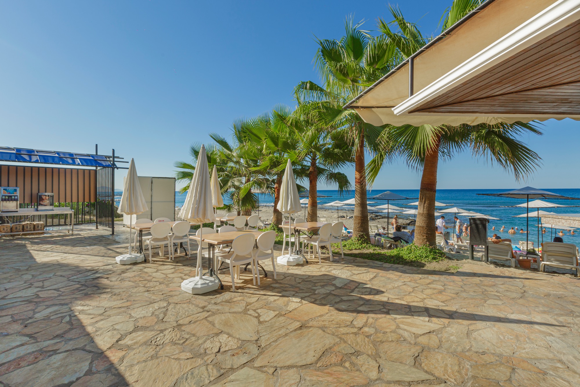 Hotel Saritas se nalazi odmah preko puta plaže (do koje vodi podzemni prolaz) - udaljena je oko 50m Ležaljke i suncobrani su besplatni na plaži, dok peškiri za plažu nisu dostupni **Na plaži ne postoji beach bar,već se može koristiti bar susednog hotela,uz doplatu