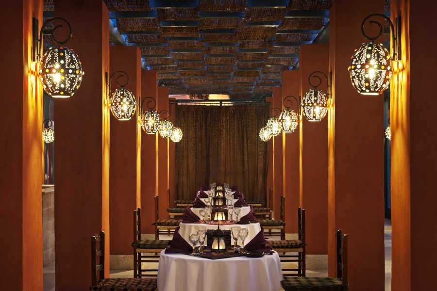 Hotelski sadržaj: Recepcija, 8 restorana (restoran Oriental 1001 sa regionalnom i internacionalnom kuhinjom, restoran La Piscina sa italijanskom kuhinjom itd.), više barova (bar Miramar je sa živom muzikom), 2 otvorena bazena, Wi-Fi internet, na javnim mestima u hotelu, mali tržni centar, Spa & Wellness centar (fitnes, masaža, razni tretmani itd.), teretana, animacija, stoni tenis, bilijar, dečije igralište, razni sportovi na vodi itd. Hotelska plaža je obezbeđena kamenim bedemom, a pošto je cela obala sastavljena iz više laguna, postoji i deo prilagođen kupanju sa direktim ulazom u vodu sa peščanom plažom, kao i deo sa koralnim grebenom. Ležaljke i suncobrani na plaži su besplatni.