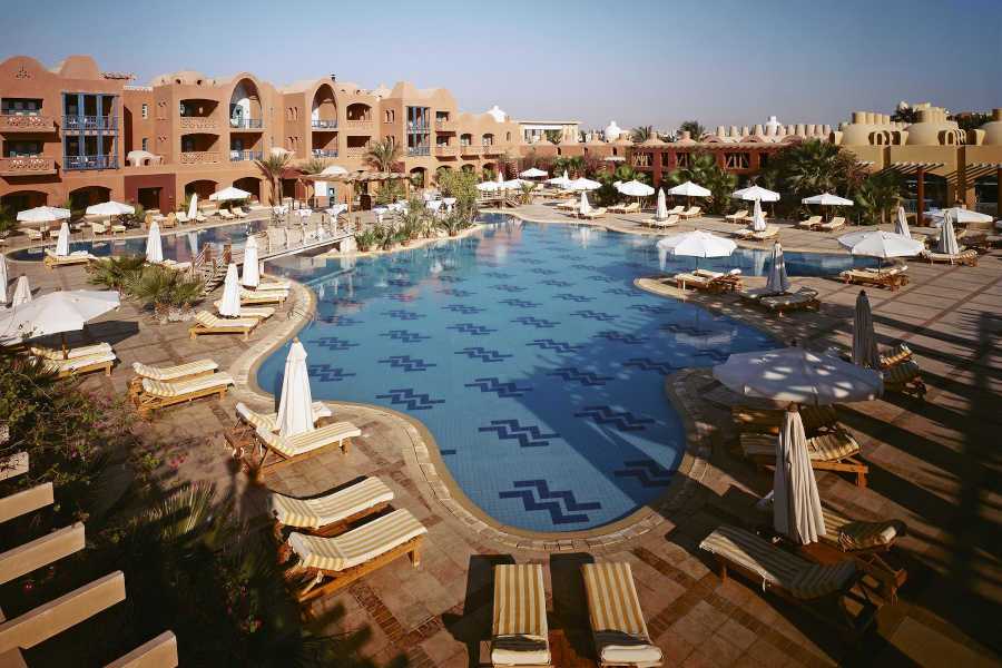 Hotel Sheraton Miramar Resort 5*, El Gouna, Egipat - je miks arapskog, egipatskog i nubijskog stila. Izgrađen je na 9 manjih ostrva, povezanih baštenskim stazama i pešačkim mostovima. Nalazi se oko 36 km od aerodrma u Hurgadi i oko 2 km od centra El Gouna, nudi uslugu All Inclusive i predstavlja savršen izbor za letovanje u Hurgadi 2021.