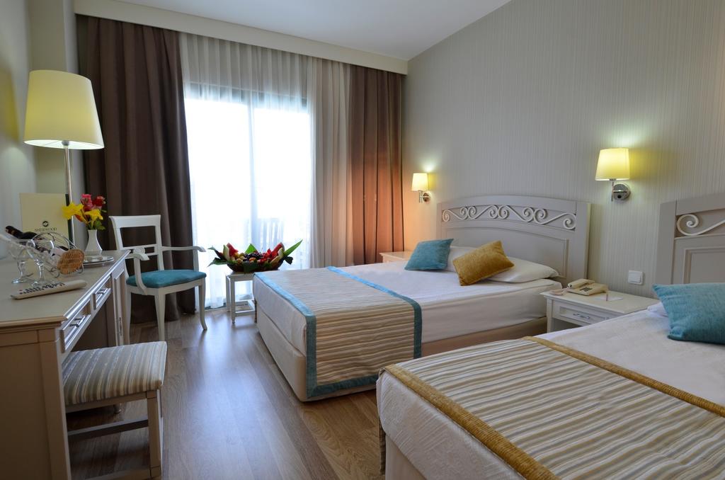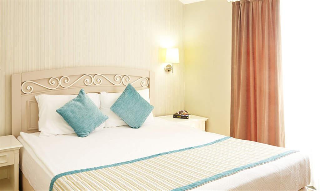 Sve sobe u hotelu su klimatizovane i imaju : SAT TV, telefon, mini bar (prazan), sef (uz doplatu), kupatilo, fen, laminat (u bungalovima pločice), balkon ili terasa.