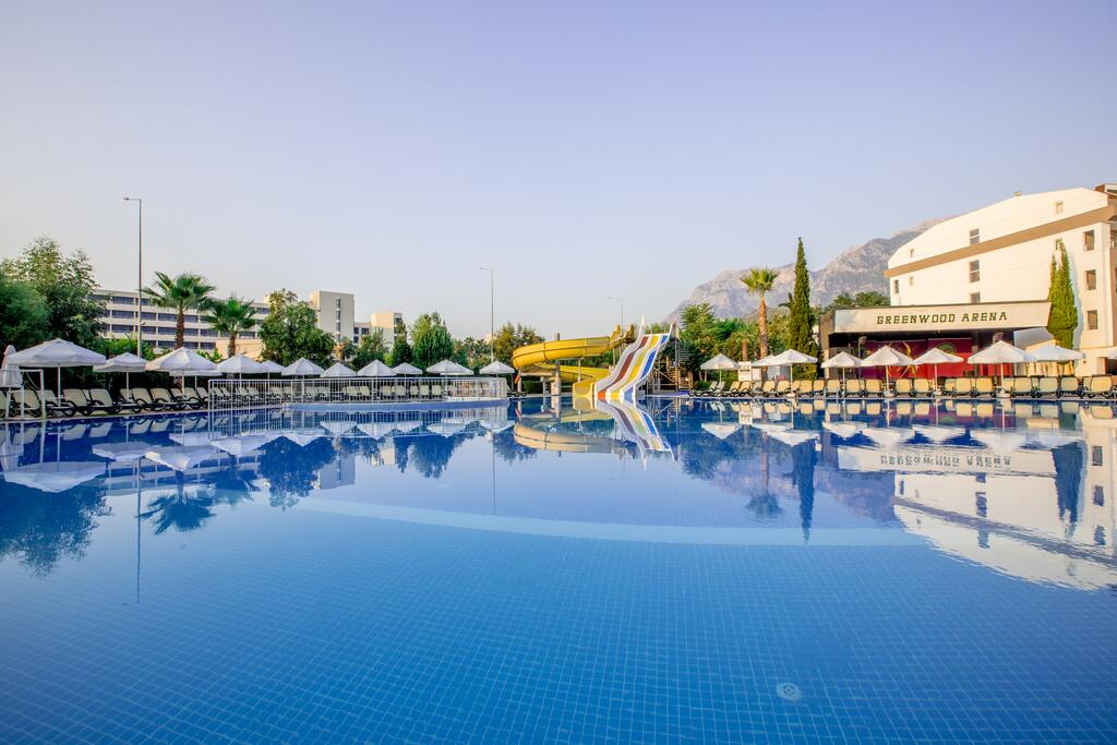 Greenwood Kemer Resort 4*, Kemer (Turska) - nalazi se 180 m od peščano-šljunkovite plaže od koje je deli ulica, 9 km od grada Kemer, 55 km od aerodroma u Antaliji.