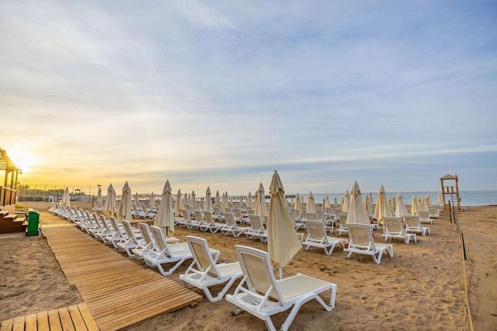 Hotelska privatna peščana plaža je udaljena 900 m od hotela. Korištenje ležaljki, suncobrana i peškira za plažu je uključeno u cenu. Besplatan shuttle do plaže.