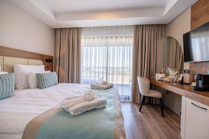 Hotel ima ukupno 325 soba. Standardne sobe (31m², jedna spavaća soba s francuskim krevetom + jedan single krevet + pomoćni ležaj, jedno kupatilo, max. 3 osobe + 1 dete), Standardna soba sa jacuzzijem (31 m², spavaća soba s francuskim krevetom + jedan single krevet, jedno kupatilo, jacuzzi i ljuljačka na balkonu, max. 2 + 1 osoba), Soba sa direktnim pristupom bazenu (36 m², spavaća soba s francuskim krevetom + jedan single krevet, jedno kupatilo, direktan pristup zajedničkom bazenu, max. 2 osobe), Superior sobe (38 m², jedna spavaća soba sa francuskim krevetom + jedan single krevet + pomoćni ležaj, max. 3 osobe + 1 dete), Porodične sobe (39 m², dve spavaće sobe sa vratima između, jedna spavaća soba sa francuskim krevetom, druga sa dva single kreveta, jedno kupatilo, max. 4 osobe + dete). Sve sobe imaju privatno kupatilo sa tušem i fenom za kosu, papuče, centralni klima uređaj koji radi u određenim satima prema vremenskim uvjetima, telefon s direktnom linijom, mini bar (voda, bezalkoholna pića koja se svakodnevno dopunjuju), kuhalo, set za pripremu čaja i kafe, sef, laminat na podu, satelitsku TV i muzički kanal, WI-FI internet i balkon.