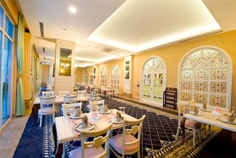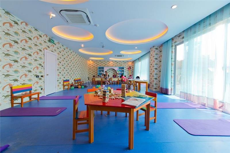 Sadržaj hotela: Recepcija,glavni restoran,a la carte restorani,barovi,poslastičarnica,diskoteka,dečiji bazen,igralište,mini club,otvoren i zatvoren bazen,aqua park sa toboganima,fitness centar,stoni tenis,pikado,odbojka na plaži,tursko kupatilo,parno kupatilo,sauna,masaže