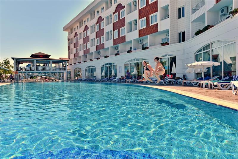 Sadržaj hotela: Recepcija,glavni restoran,a la carte restorani,bar pored bazena,bar na plaži,otvoren i zatvoren bazen za odrasle i decu,tobogani,fitness centar,tursko kupatilo,sauna,odbojka na plaži,stoni tenis,mini club