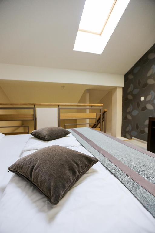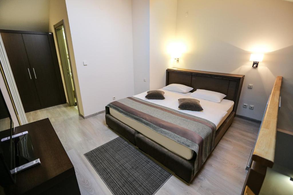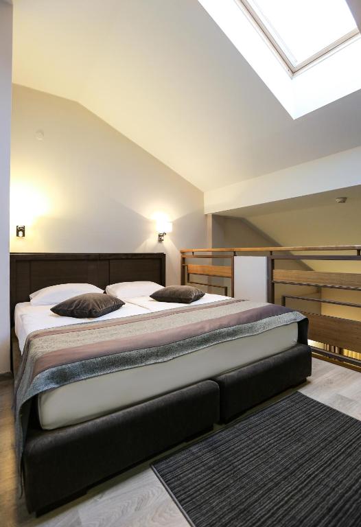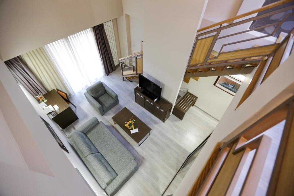 - Superior dvokrevetna soba sa sofom - oko 50 m2, za 1-3 odrasle osobe ili 2 odrasle +2 deteta na sofi, sa terasom ili francuskim balkonom, francuskim ležajem 200x200 na galeriji, sofom u dnevnom boravku 145x190, 2 LCD -a, sef, telefon, fen, wi/fi internet besplatno i 2 kupatila, bade mantil i papuče, mini-bar uz naplatu.