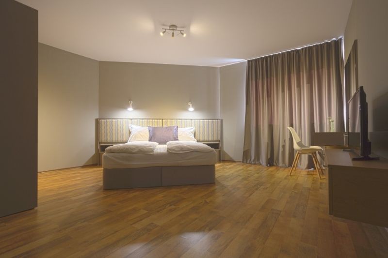 Jednosobni apartman za smeštaj 2-4 osobe (2+2): spavaća soba sa francuskim ležajem, dnevni boravak sa sofom na rasklapanje. Namenjen smeštaju porodica sa najviše dvoje dece ili troje odraslih + jedno dete.