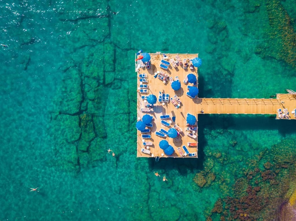 Hotel nudi jedinstveno iskustvo odmora uz more – do plaže stižete kroz privatni tunel dug samo 20 metara, bez potrebe da napuštate hotelski kompleks.