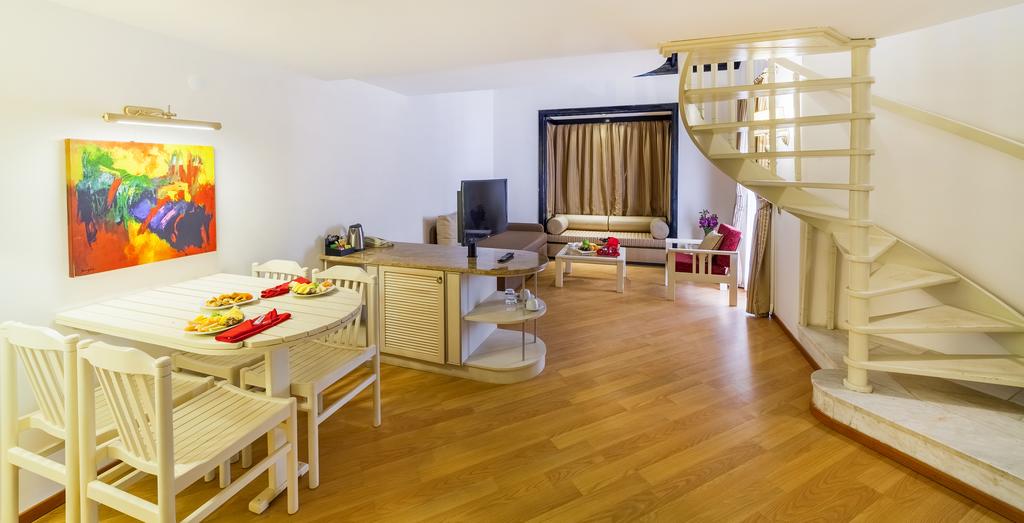 Hotel se sastoji od glavne i club zgrade. Hotelska zgrada: -Standardne sobe sa pogledom na kopno -Standardne sobe sa pogledom na more Club zgrada: -Club superior sobe -Club porodične sobe -Club duplex porodične sobe -Club bungalovi Sve sobe imaju kupatilo sa kadom ili tuš kabinom,fen, mini bar (dopunjava se svakodnevno), klimu,telefon,sef (uz doplatu), SAT TV, balkon ili terasu **Wi-fi je besplatan ali slabije brzine