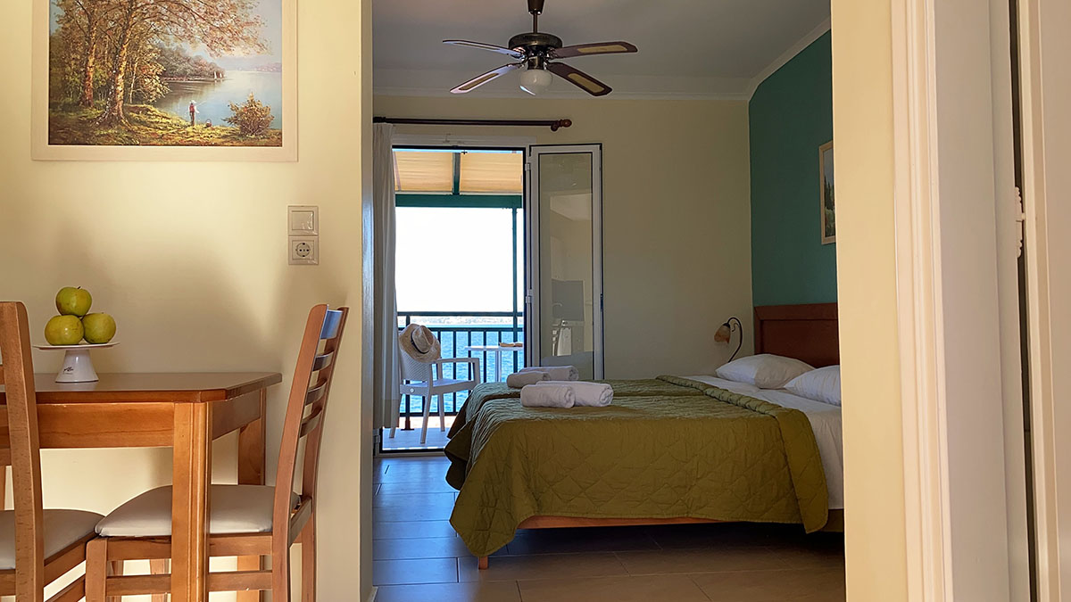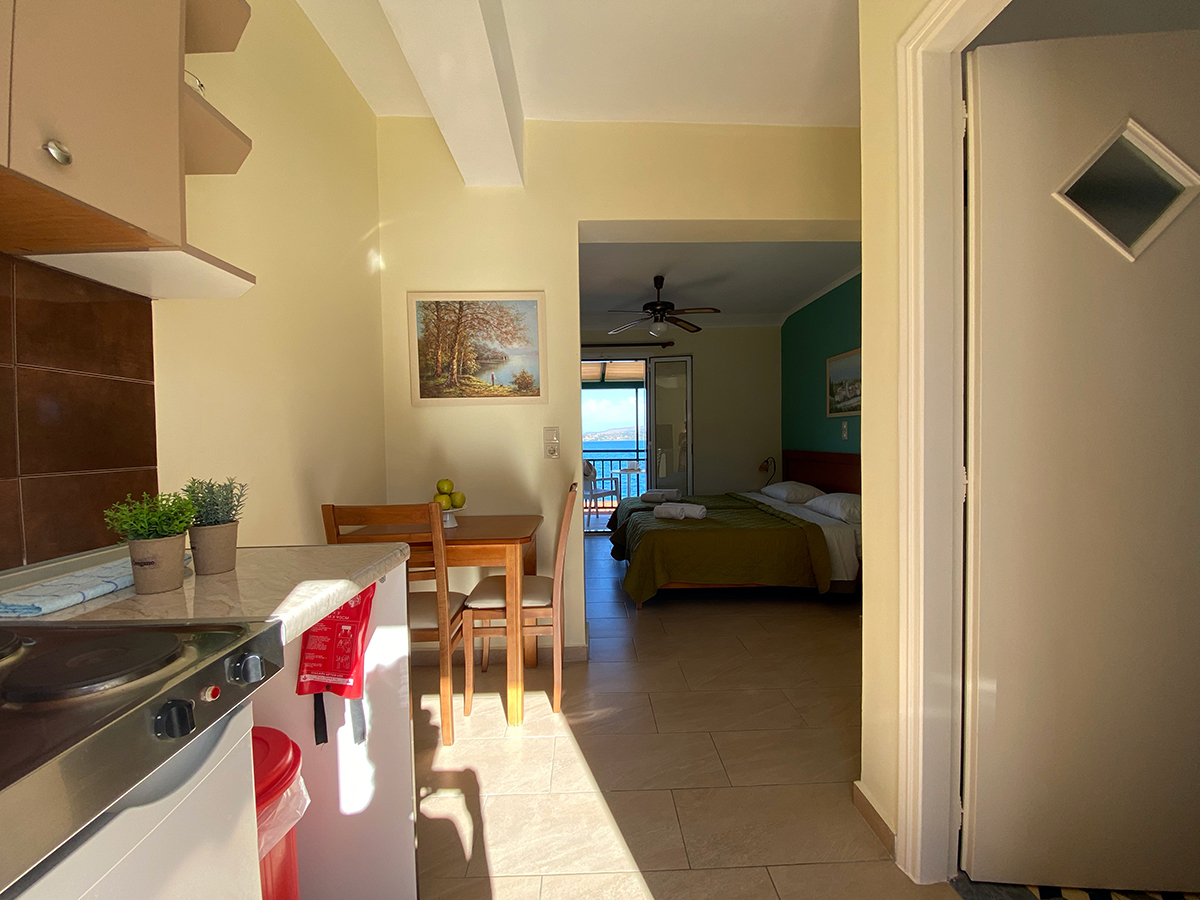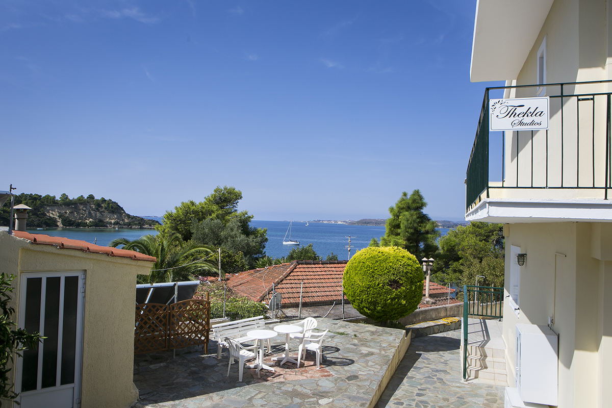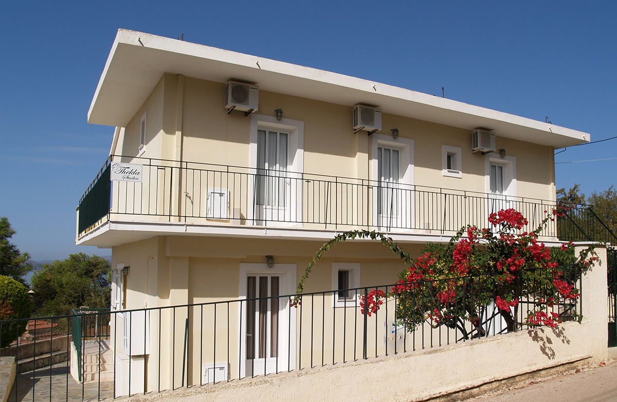 VILA THEKLA STUDIOS - Izbor prelepih plaža čeka goste u studijima Thekla Studios u Lassiju na Kefaloniji. U mirnom okruženju, nedaleko od glavnog puta i u blizini brojnih gradskih taverni, barova i prodavnica, studiji su udaljeni 50m od najbliže peščane / šljunkovite plaže. Zapanjujući pogled na more, posebno u svetlu veličanstvenih zalazaka sunca, dodaje romantičnu i opuštajuću atmosferu popularnosti Lassija kao destinacije. Objekat poseduje studije u prizemlju i na spratu. Studiji u prizemlju imaju terasu sa više svežeg vazduha - savršeno za odmor na grčkom ostrvu!