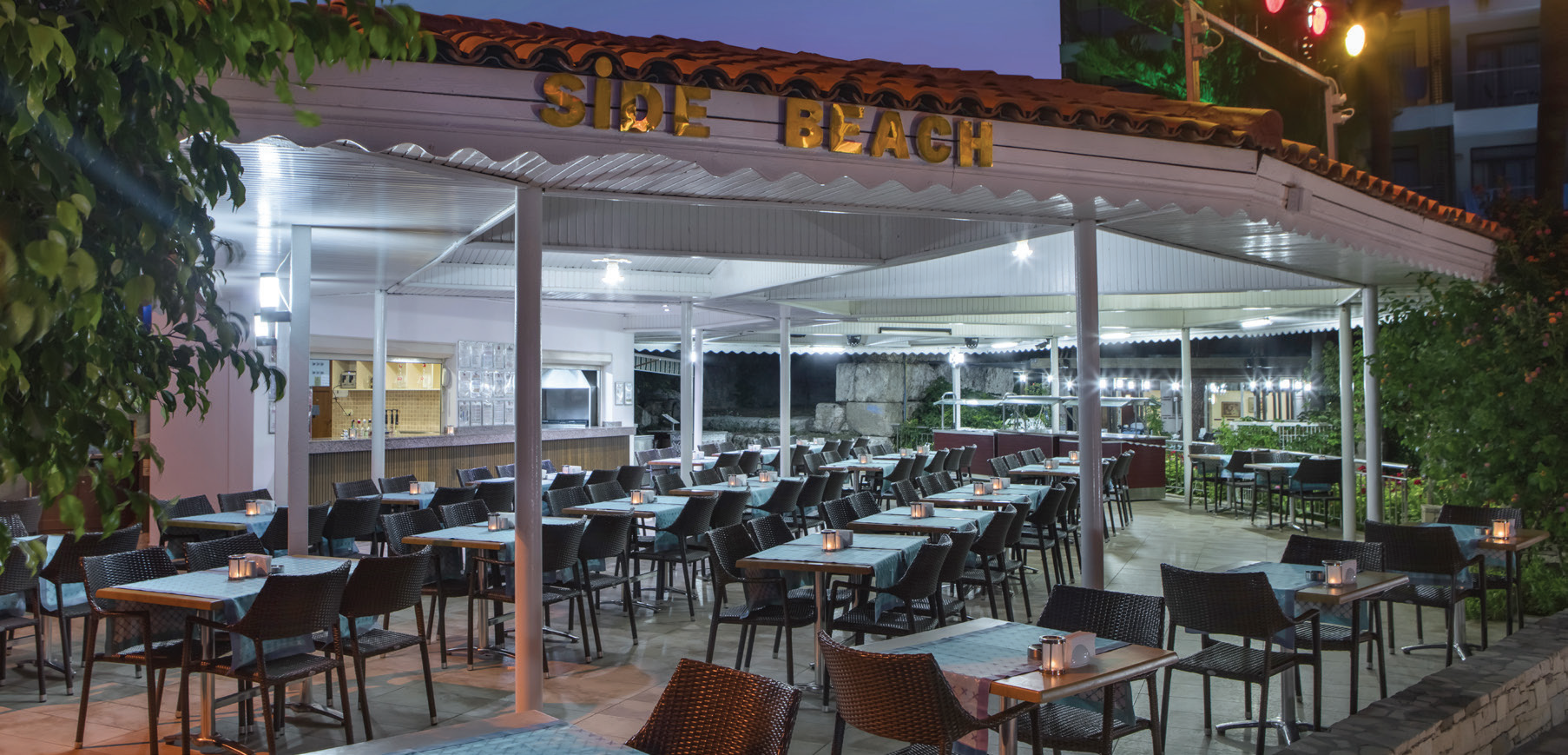 Trendy Side Beach Hotel 4* - se nalazi na plaži, na kojoj su ležaljke i suncobrani besplatni za goste hotela. Od centra mesta Side udaljen je 1 km, a od aerodroma u Antaliji 65 km. Namenjen je smeštaju gostiju starijih od 16 godina.