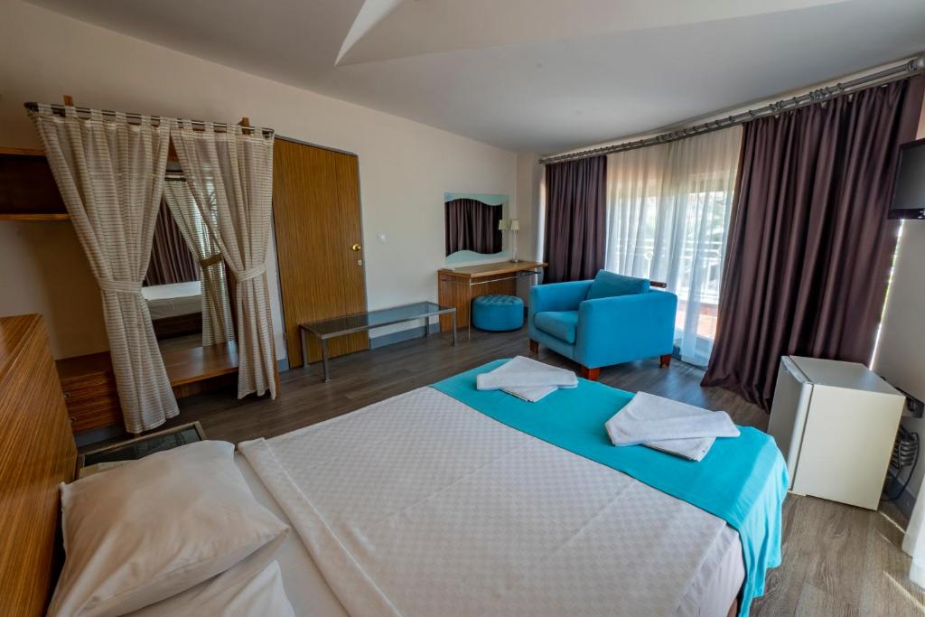 Smeštaj: Hotel ima ukupno 170 smeštajnih jedinica raspoređenih u 4 bloka. Svaka smeštajna jedinica ima: kupatilo sa kadom ili tuš kabinom, fen, klimu, direktnu telefonsku liniju, mini bar (flaša vode po dolasku), sef (uz doplatu), WIFI (uz doplatu), SAT TV i muzičke kanale, balkon ili terasu.