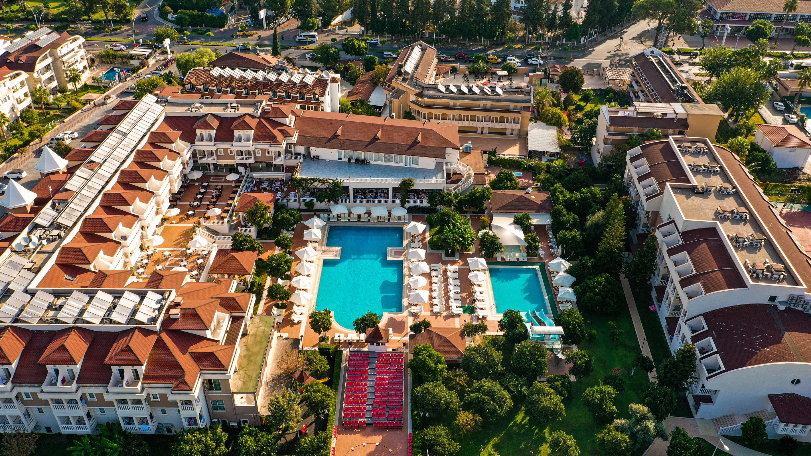 All inclusive – samoposluživanje, izbor više jela u glavnom restoranu: doručak, ručak, večera. U koncept su još uključene užine, lokalna alkoholna i bezalkoholna pića. Gostima je dostupan a’la carte restoran jednom u toku boravka ( plaća se 5 eur po odrasloj osobi) uz prethodnu rezervaciju. Uz doplatu: uvozna pića, sveže ceđeni sokovi, turska kafa, sva pića na plaži i u a’la carte restoranu.