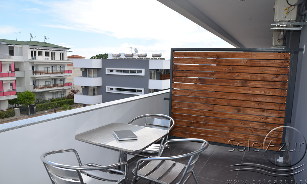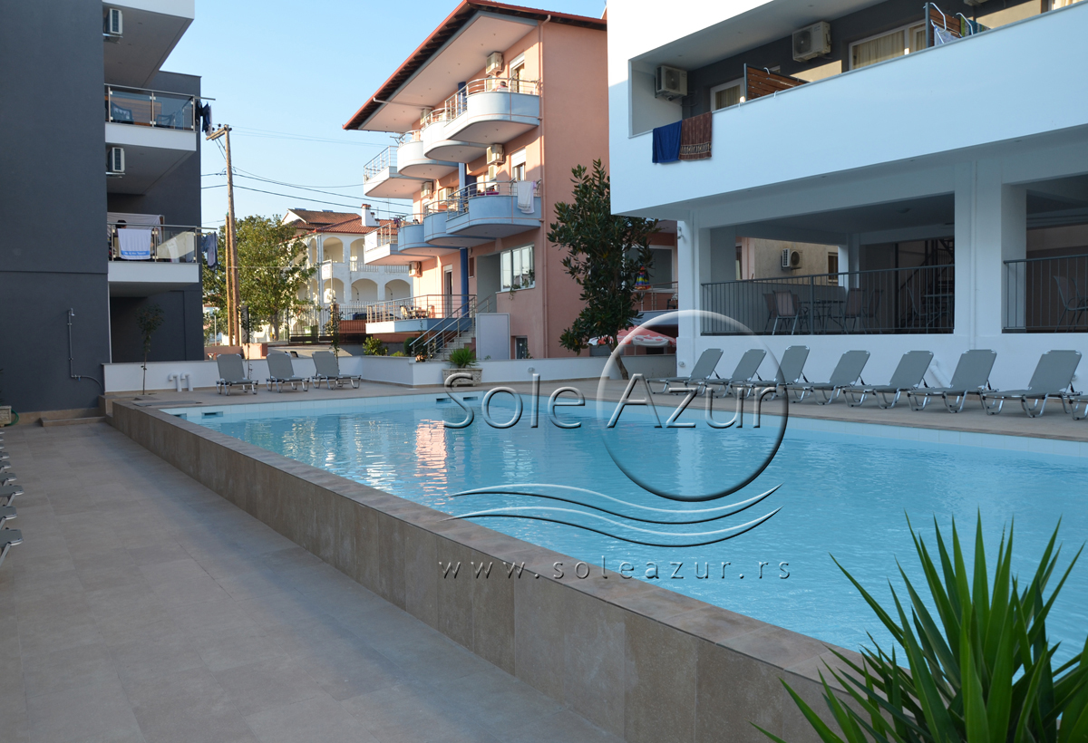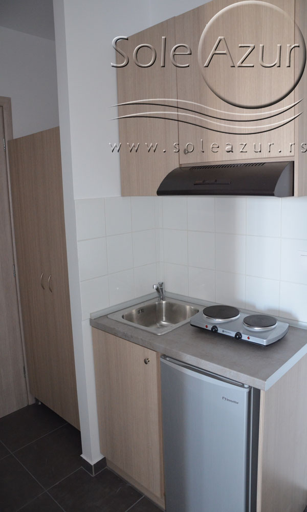 DVOKREVETNI STUDIO - poseduje ili dva standard ležaja ili francuski ležaj, TV/KAT, ormar, noćni stočić, A/C (klima uređaj), BESPLATNU wi-fi internet konekciju, opremljenu kuhinju sa rešoom sa dve ringle, frižider. Kupatilo sa TUŠ/WC, Stidiji su veoma komforni i svi studiji imaju izuzetno lepu terasu sa stolom i dve stolice, sa koje se pruža pogled na bazen i park.