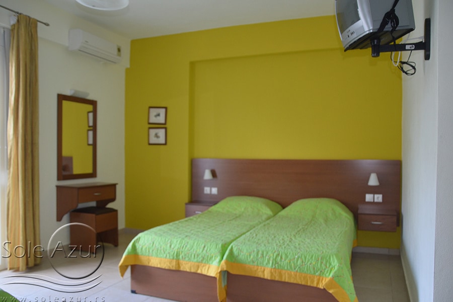 * Dimenzije ležaja u Grčkoj se razlikuju od naših standarda. Grčki standard za normalan ležaj je 75-80 cm sa 185-190 cm, francuz 120 x 190 cm i bračni ležaj 140-155 cm sa 180-190 cm. Pomoćni ležaj u svim objektima u Grčkoj je na sklapanje, drvene ili metalne konstrukcije ili fotelje na rasklapanje, manjih dimenzija.