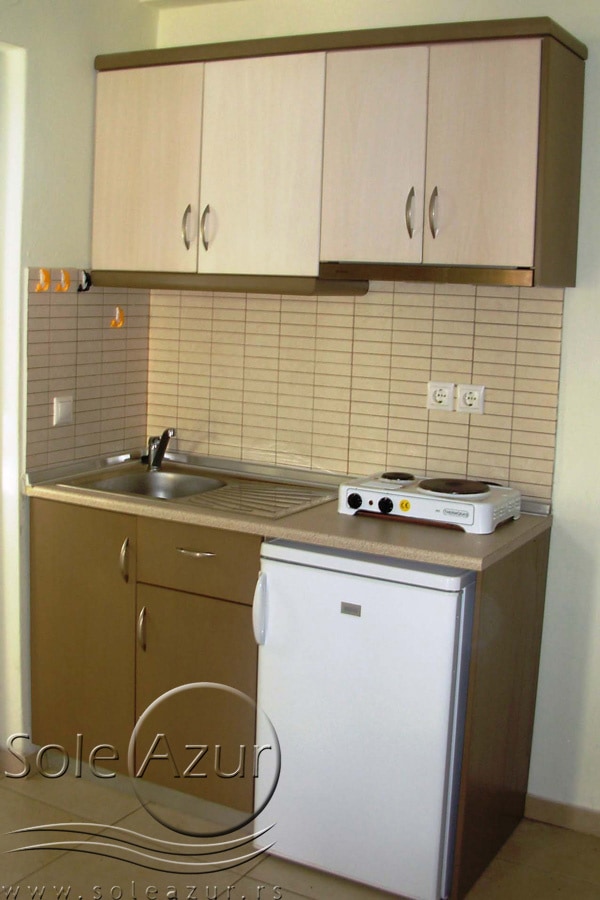 DVOKREVETNI STUDIO: Dvokrevetni studiji u svom sastavu poseduju dva singl standardna ležaja, TV/KAT, ormar, noćni stočić, A/C (klima uređaj) URAČUNAT U CENU, BESPLATNU wi-fi internet konekciju, kompletno opremljenu kuhinju sa rešoom sa dve ringle, frižider, aspirator; Kupatilo sa TUŠ/WC, Studiji su veoma konforni i svi studiji imaju izuzetno lepu terasu sa stolom i dve stolice, sa koje se pruža pogled na more..
